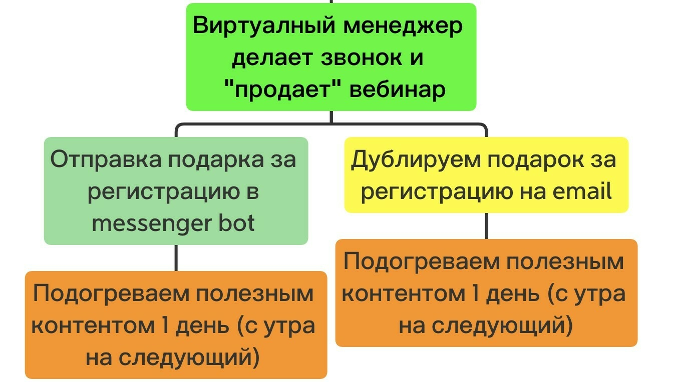 — роботизированный звонок голосом автора курса, цель которого лично пригласить клиента, напомнить о начале, рассказать о том, что конкретно человек получит на вебе (какой результат) и какой подарок он сможет забрать уже через час;